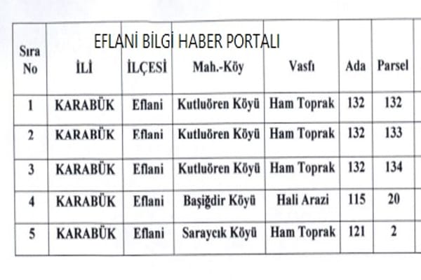 Eflani Milli Emlak Şefliği, Başiğdir, Kutluören ve Saraycık köylerinde toplam 5 araziyi satışa çıkardı. İhale tarihi 28 kasım 2024 Satış… Devamını Oku